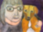 I am countering the mental depth of this work with trace monotypes and other media. Every morning after Scout's walk, I journal in pen and watercolor what happened on our walk. Over the last five months, I've become proficient at drawing myself and Scout though mainly as cartoon characters. I attempted this portrait of us. I like it. Scout isn't too sure.